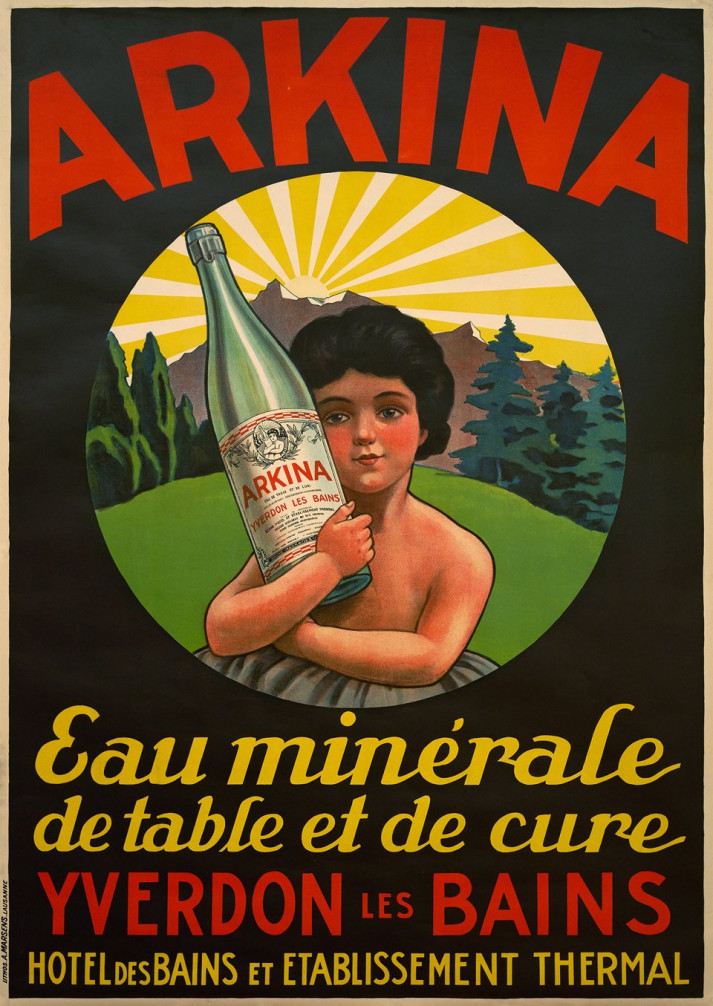 Du côté d’Yverdon, l’eau de la source La Prairie, commercialisée dès 1922 sous le nom d’Arkina, fera le bonheur des curistes, en combinaison avec l’eau sulfurée des thermes, avant d’être exportée dans les Grisons en 1969, laissant le monopole de l’eau minérale vaudoise à Henniez dont la déclinaison des types d’eau signe la véritable réussite, selon Lisane Lavanchy: la Henniez bleue, l’eau plate commercialisée dans les années 1940, précède la Henniez Verte légèrement gazéifiée qui apparaît en 1974 comme une alternative à l’historique Henniez Rouge gazeuse.