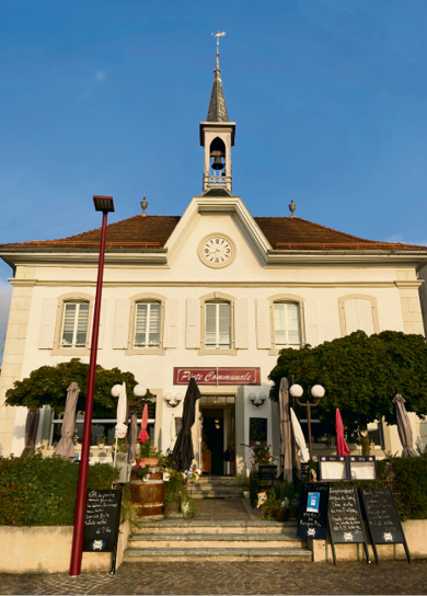 Construite en 1914, l’Auberge communale fut tout à la fois Hôtel de Ville, école et pinte. Ce bâtiment est le principal monument du village et un lieu de rencontre incontournable pour ses habitants ainsi que ceux de la région de Nyon.