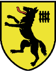 D’or au loup ravissant de sable, accompagné au chef senestre d’une claie du même.