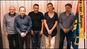 Municipalité de gauche à droite : Michel Pansier (vice-syndic), Frédéric Geoffroy (syndic), Christophe Vulliamy (municipal), Margarita Pache (municipale), Stéphane Masini (municipal). Secrétaire communale : Vesin Murielle.