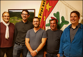 Municipalité de gauche à droite : Haussener Pierre, Dupertuis Roger, Zimmermann Marc (syndic), Neves Serra Carlos, Sordet Florian. Secrétaire communale : Dupertuis Stéphanie.