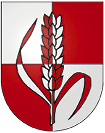 Ecartelé d’argent et de gueules, à un épi de l’un à l’autre.