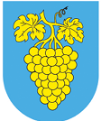 D’azur à la grappe de raisin d’or, tigée et feuillée du même.
