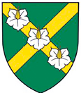 De sinople au sautoir d’or à trois fleurs de pomme de terre d’argent au pistil du second brochant en bande.