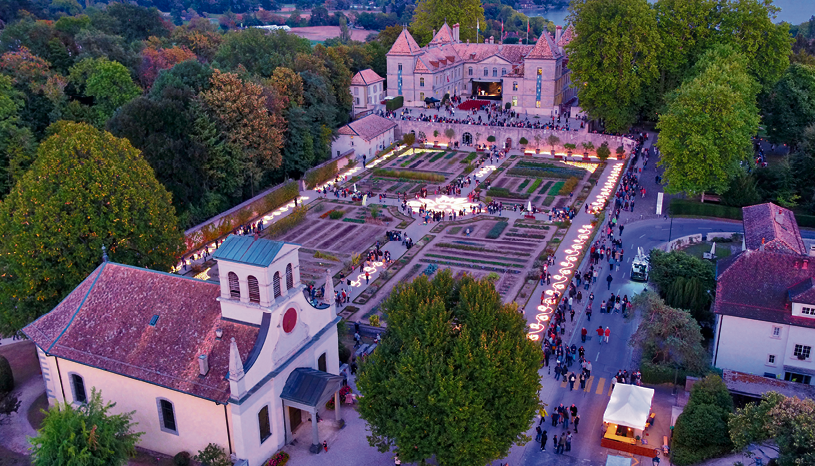 Imposant pour celui qui arpente sa cour intérieure en rêvant aux seigneurs qui vivaient là, gourmand grâce aux jardiniers qui cultivent son potager à l’ancienne, reposant pour qui paresse à l’ombre de son parc: du haut de son promontoire, le château de Prangins capte l’attention, symbole du temps qui passe sur un village au riche passé.