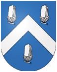 D’azur au chevron d’argent accompagné de trois glands du même.