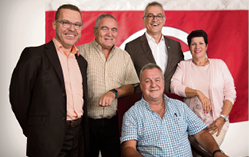 Municipalité, de gauche à droite : Blaise Jaunin, Denis Favre, Luigi Mancini, Claudia Perrin, Daniel Crot (Syndic).