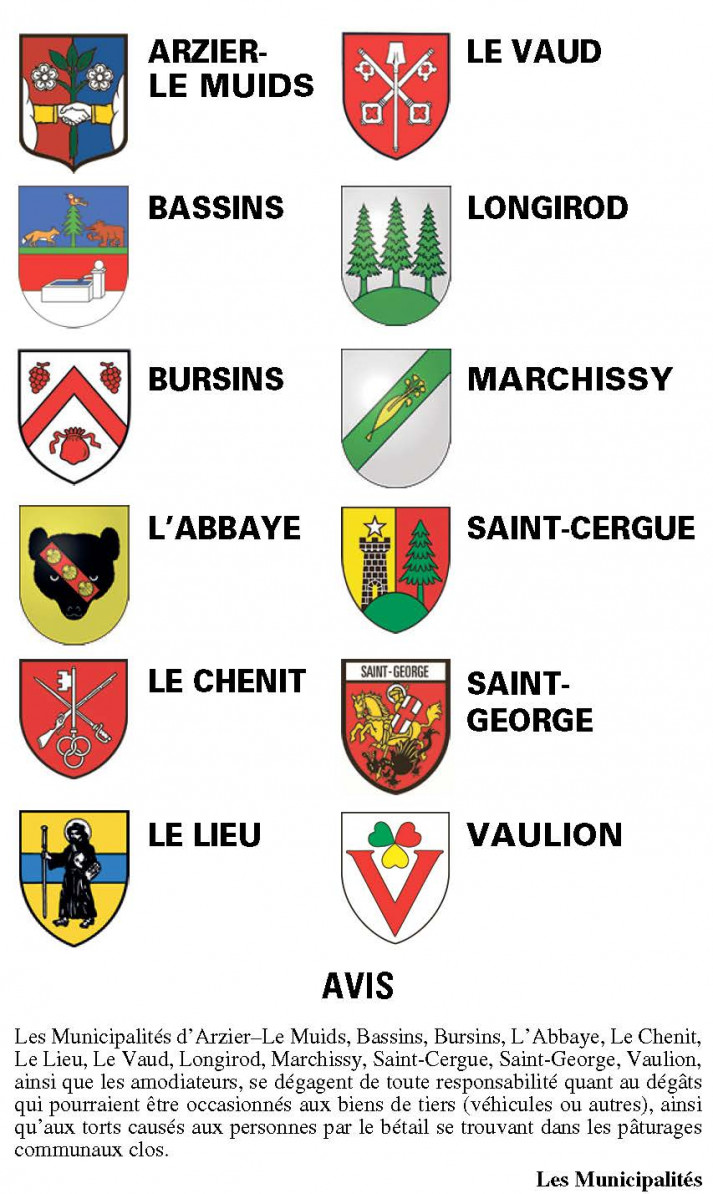 ARZIER-LE-MUIDS - BASSINS - BEGNINS - BOGIS-BOSSEY - CHAVANNES-DE-BOGIS - CHESEREX - CRANS-PRES-CELIGNY - DULLY- EYSINS - GINGINS - GLAND - LE VAUD - LONGIROD - MARCHISSY - MIES - NYON - PRANGINS - SIGNY - AVENEX - TRELEX - TANNAY